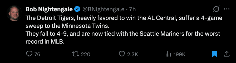 My main question is — what is the takeaway here? Is this a sign that the Twins are maybe more dangerous than I’m giving credit for? Are the Tigers showing signs that plagued the team down the stretch in ‘25?