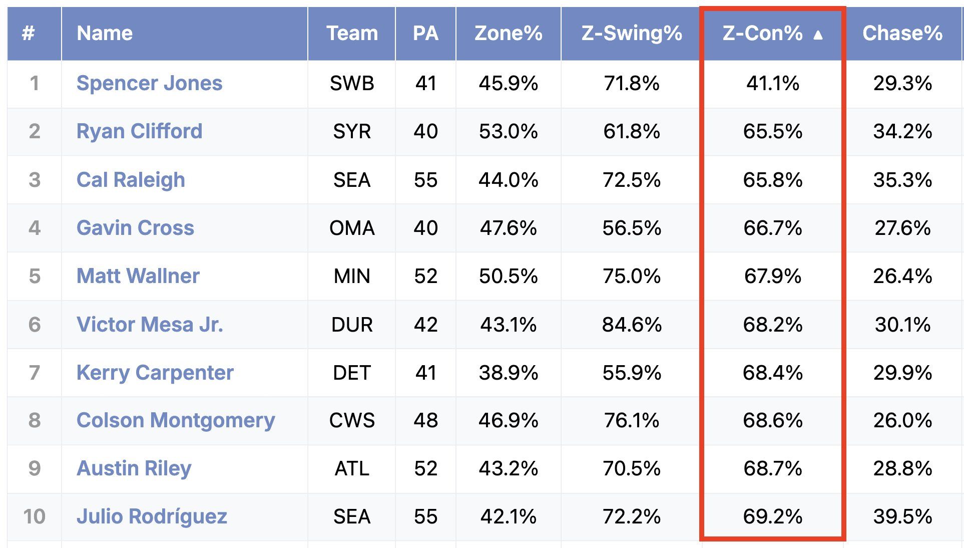 That is unfathomably awful. His Contact at pitches in the zone is nearly 40%???