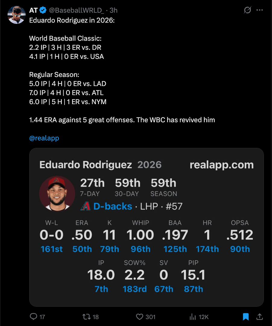 But I’d be remiss not to point out how AWESOME Eduardo Rodriguez has been, even dating back to the WBC